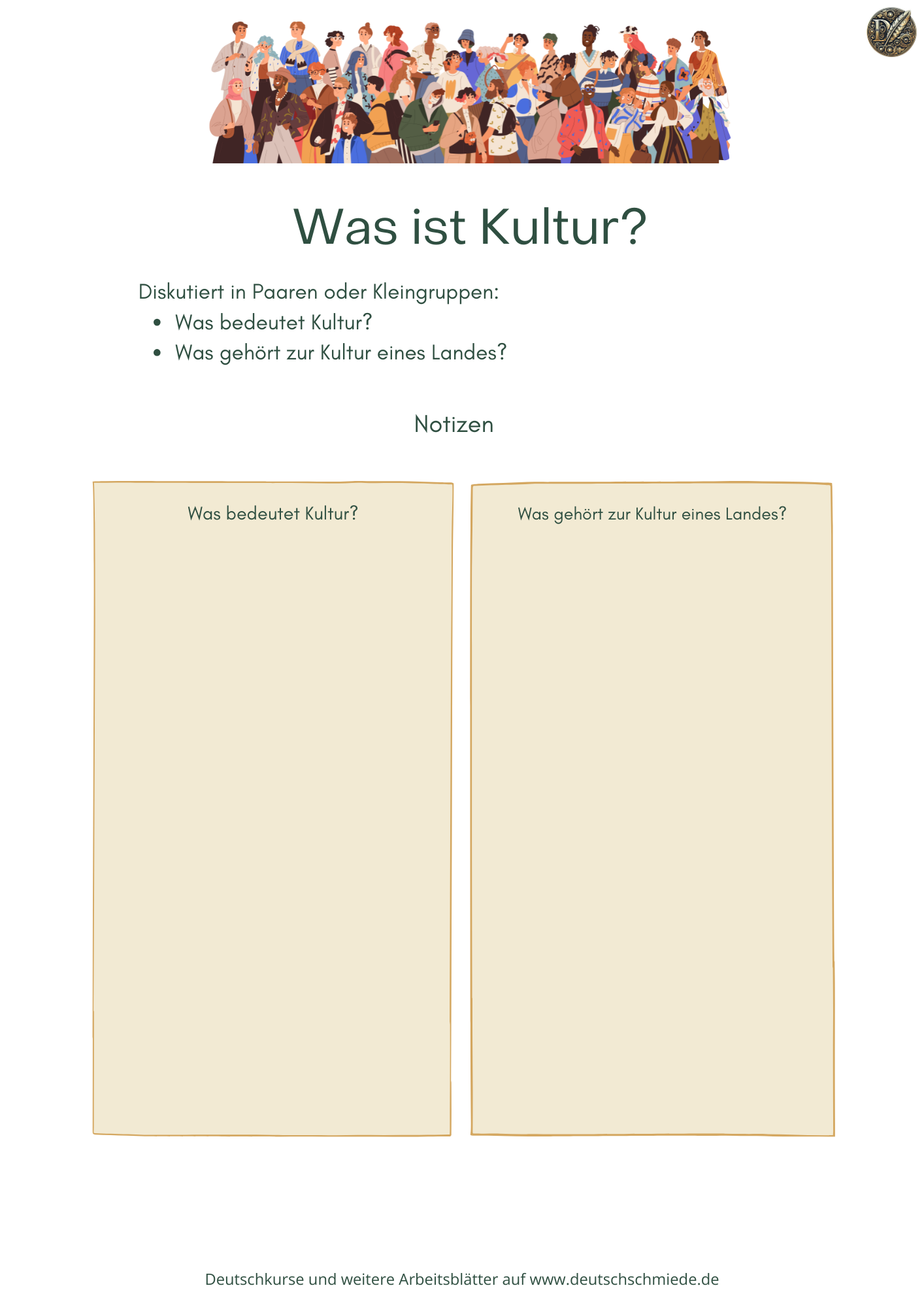 Lade jetzt das Arbeitsblatt herunter: Kultur und kulturelle Unterschiede